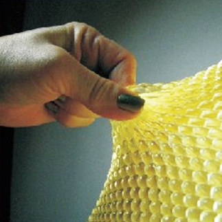 歷經35年的試驗,材質不會改變是我們引以為傲的。即使薄膜破損也不會如膠狀(凝膠墊)流出油或內部物質而造成變形。且一噸的重量持續加壓一個月,移除重量後,5秒內即能回復原來的形狀如此的復原性也是非常驚人的,所以長時間使用也不會因人體重量形成凹陷狀而且不需電費及維修費非常經濟。