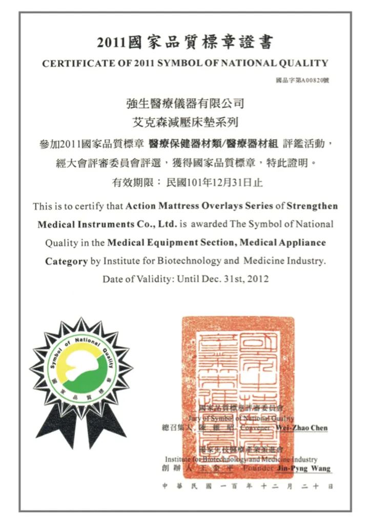 請注意市面上總類繁多,建構良幣逐劣幣優良消費新思維,艾克森減壓墊是減壓床墊通過2011國家品質標章認證。